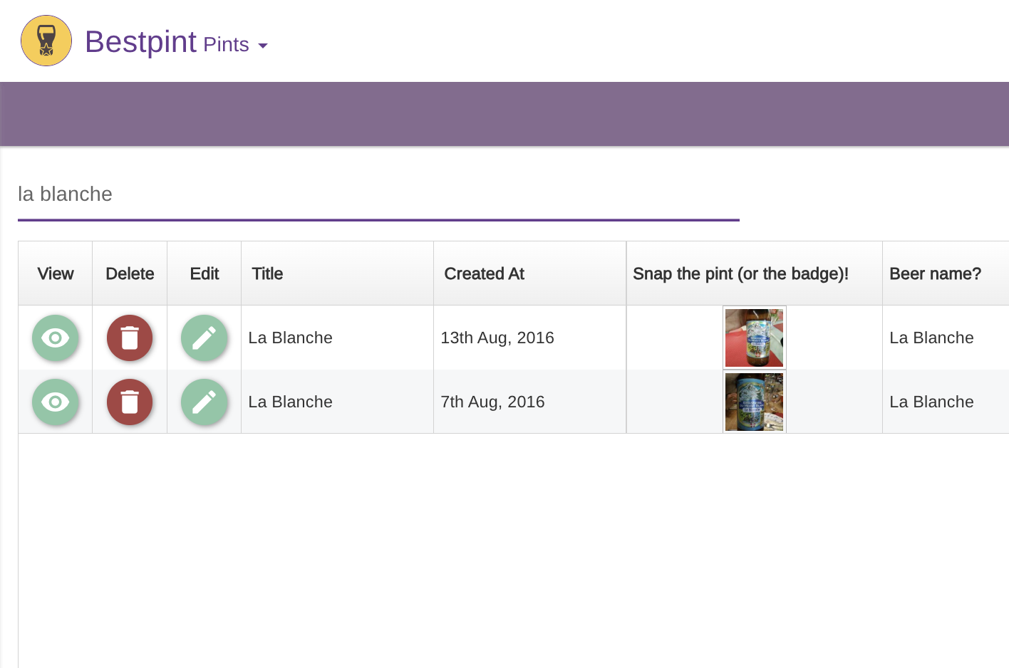In the provided screenshots, the project "Bestpint" demonstrates how the question "What is the beer name?" has been chosen as the title. For an entry where the answer was "La Blanche" (a renowned French beer), this title appears prominently in the entry popup and in the left sidebar as a header.