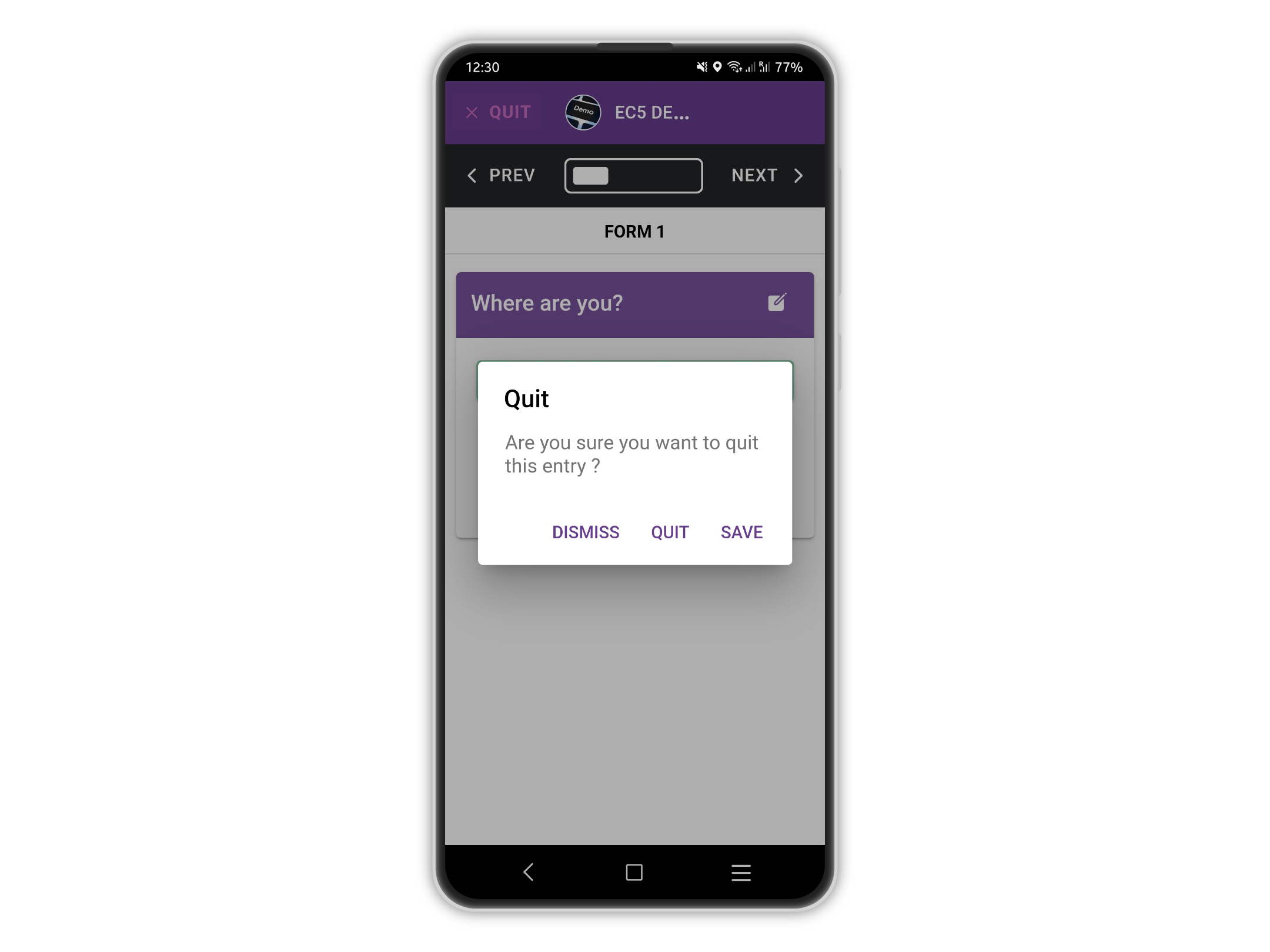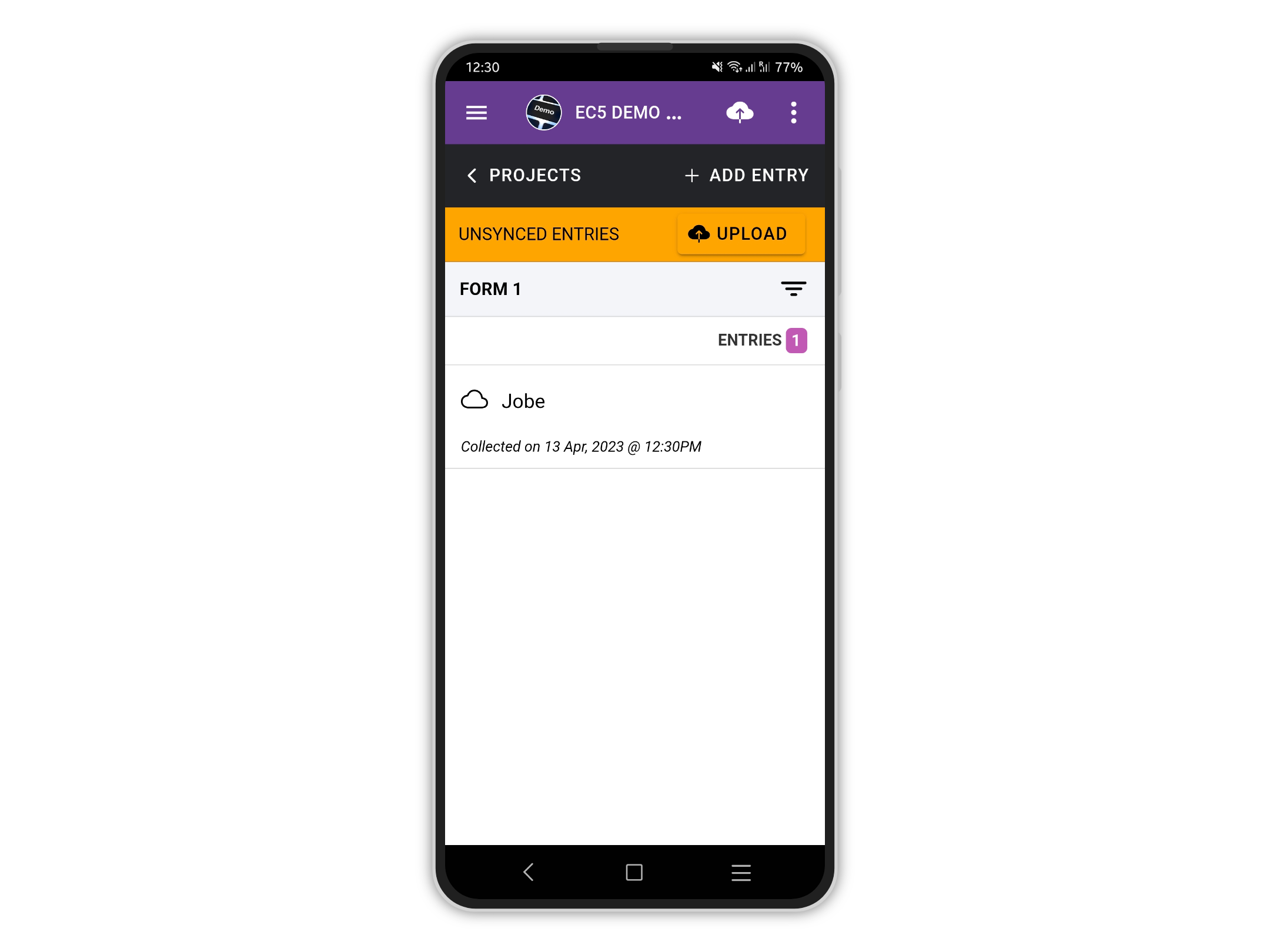 After the entry is saved locally, you will be taken back to the form home page where you can add more entries, view your entries or upload your entries to the server.