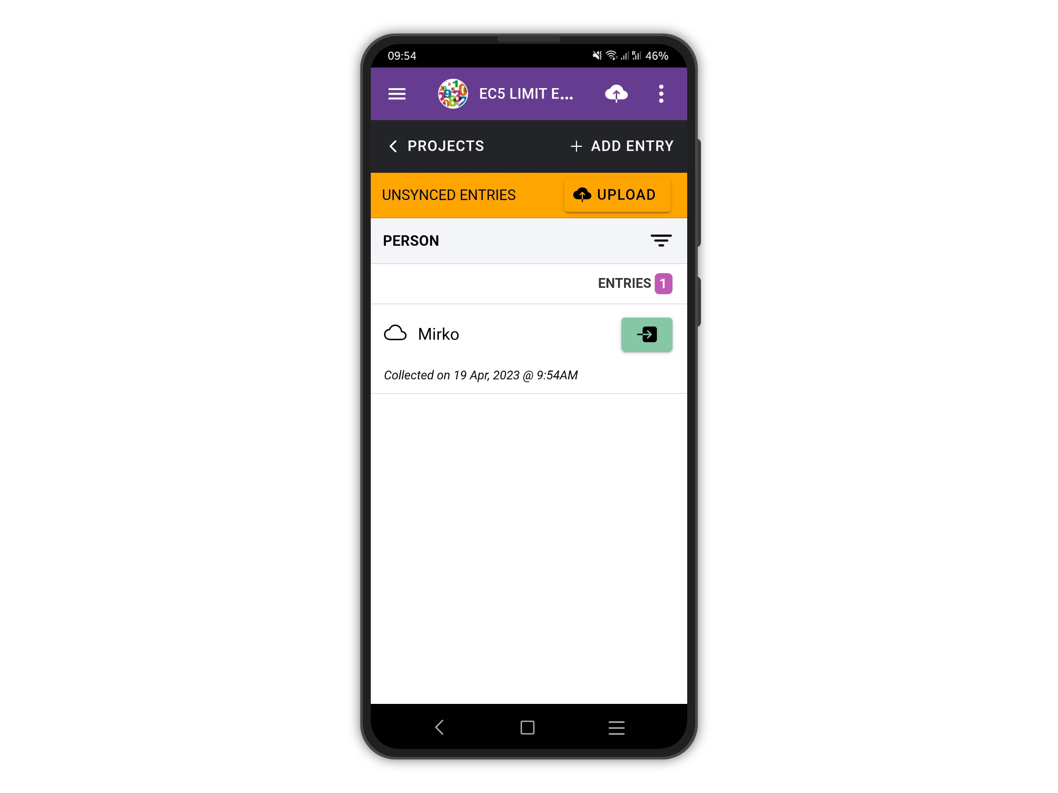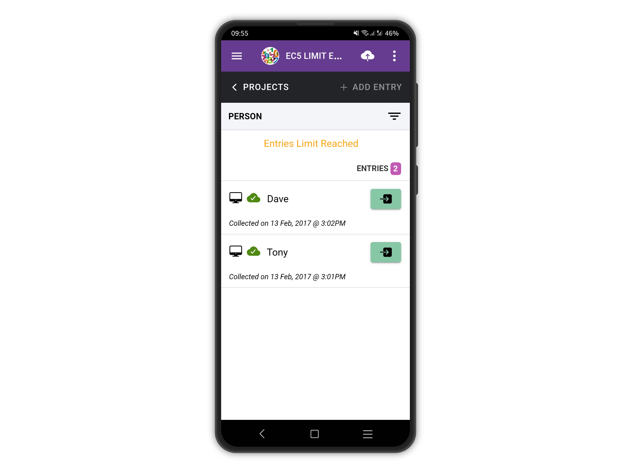 We already uploaded 2 entries to the server for the PERSON form, so let's see what happens if you try to add an extra entry.