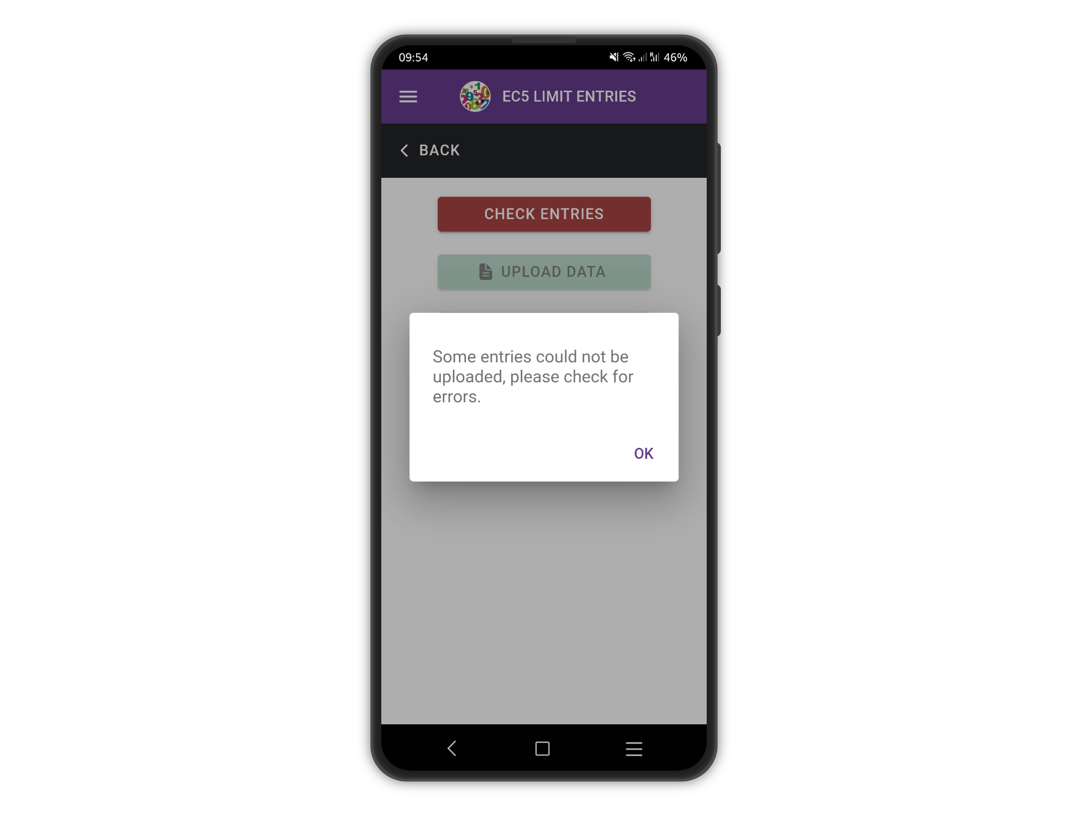 If you are collecting data for a project where the manager(s) set entry limits, you might get some errors when trying to upload entries. [More on setting entries limits](https://docs.epicollect.net/mobile-application/entries-limits)**.**