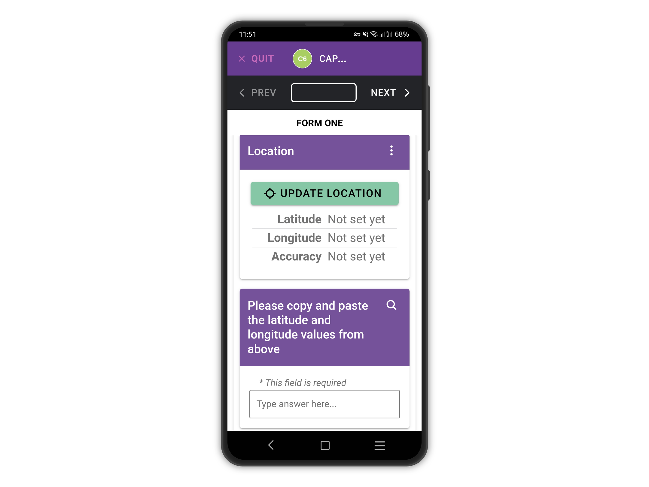 **A location question cannot be set as required**, as users might choose not to provide that information, or the device might lack GPS capabilities (e.g., a low-cost Android tablet). Additionally, obtaining a GPS lock can be challenging for various reasons. In such cases, if the location question is mandatory, the user would be unable to complete the form.