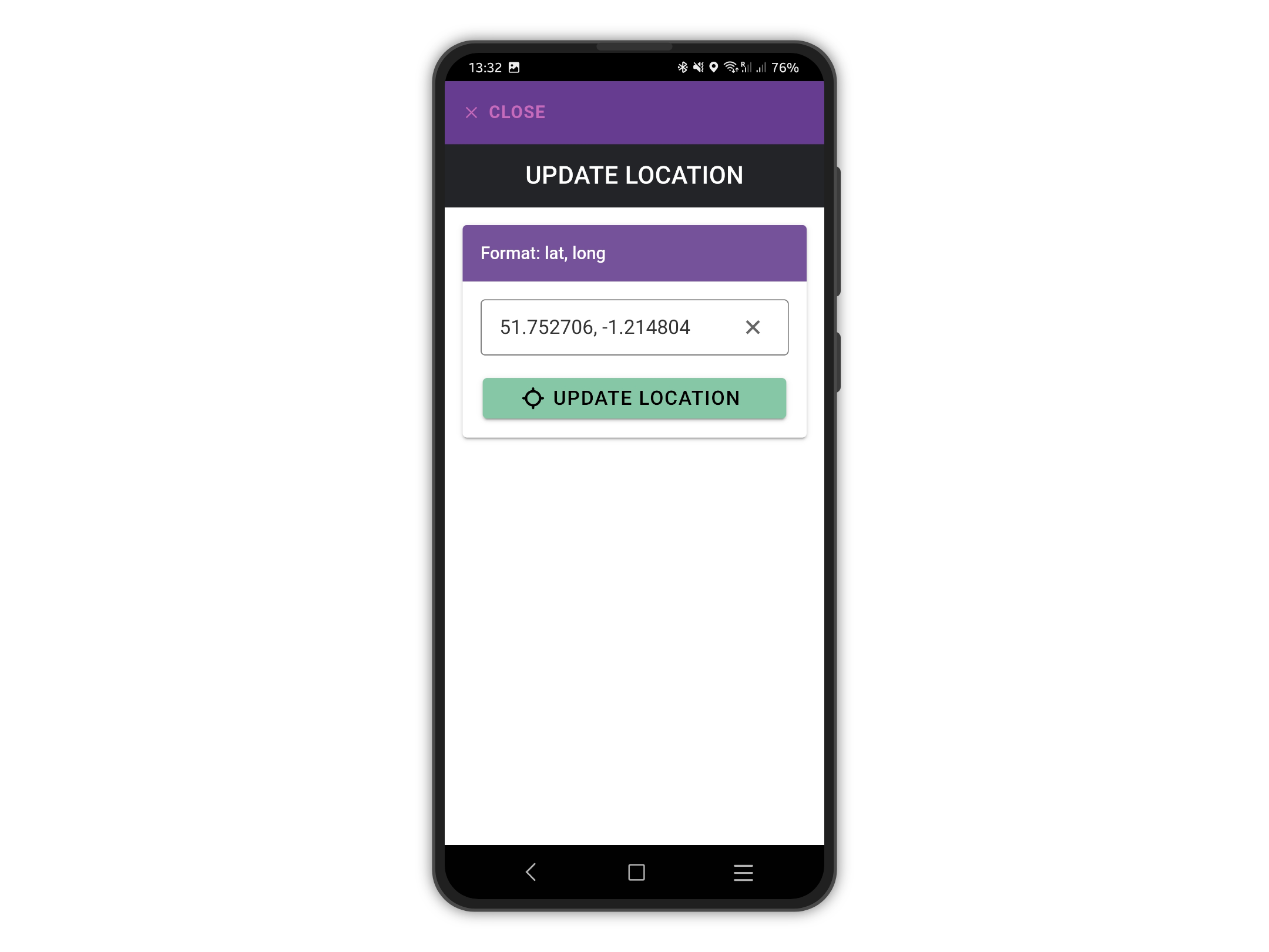 It is possible to enter the latitude and longitude values manually by tapping the menu icon and then Edit.
