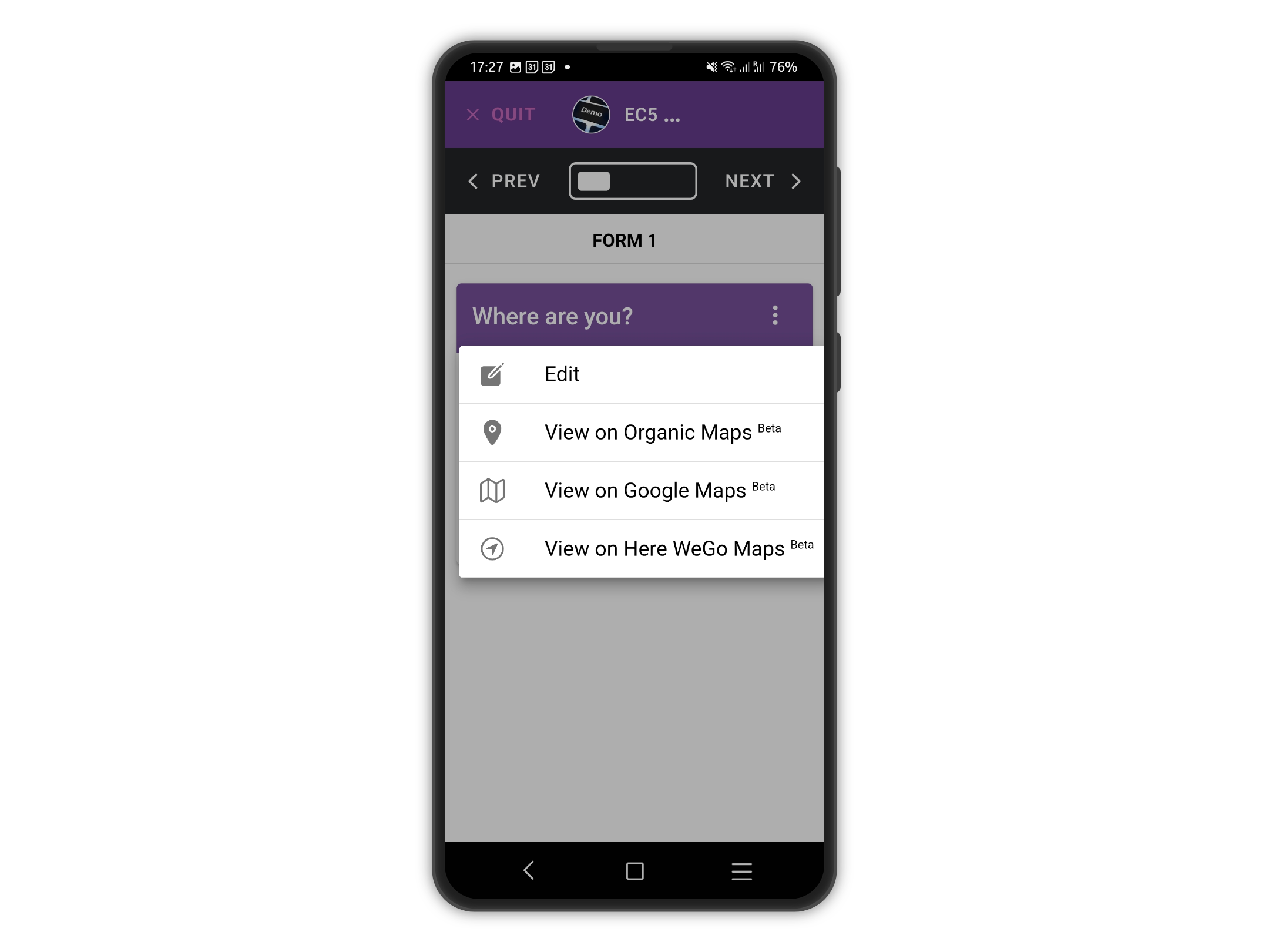 With this new feature, users can leverage the familiar interfaces and robust functionalities of these mapping applications to enhance their experience with Epicollect5. Whether you're navigating through remote areas or pinpointing specific locations, our integration with these offline maps ensures flexibility and accuracy in capturing geographic data.