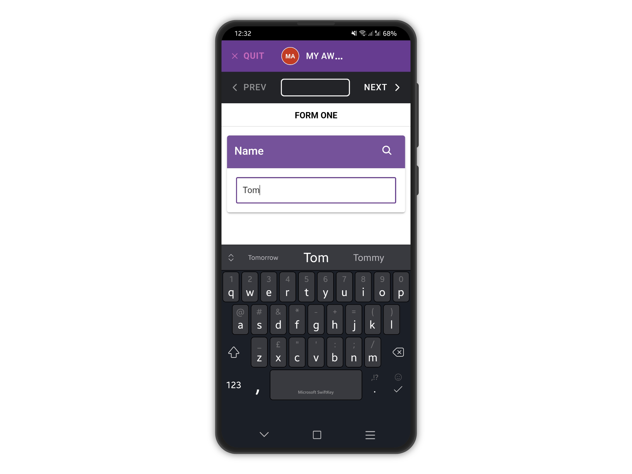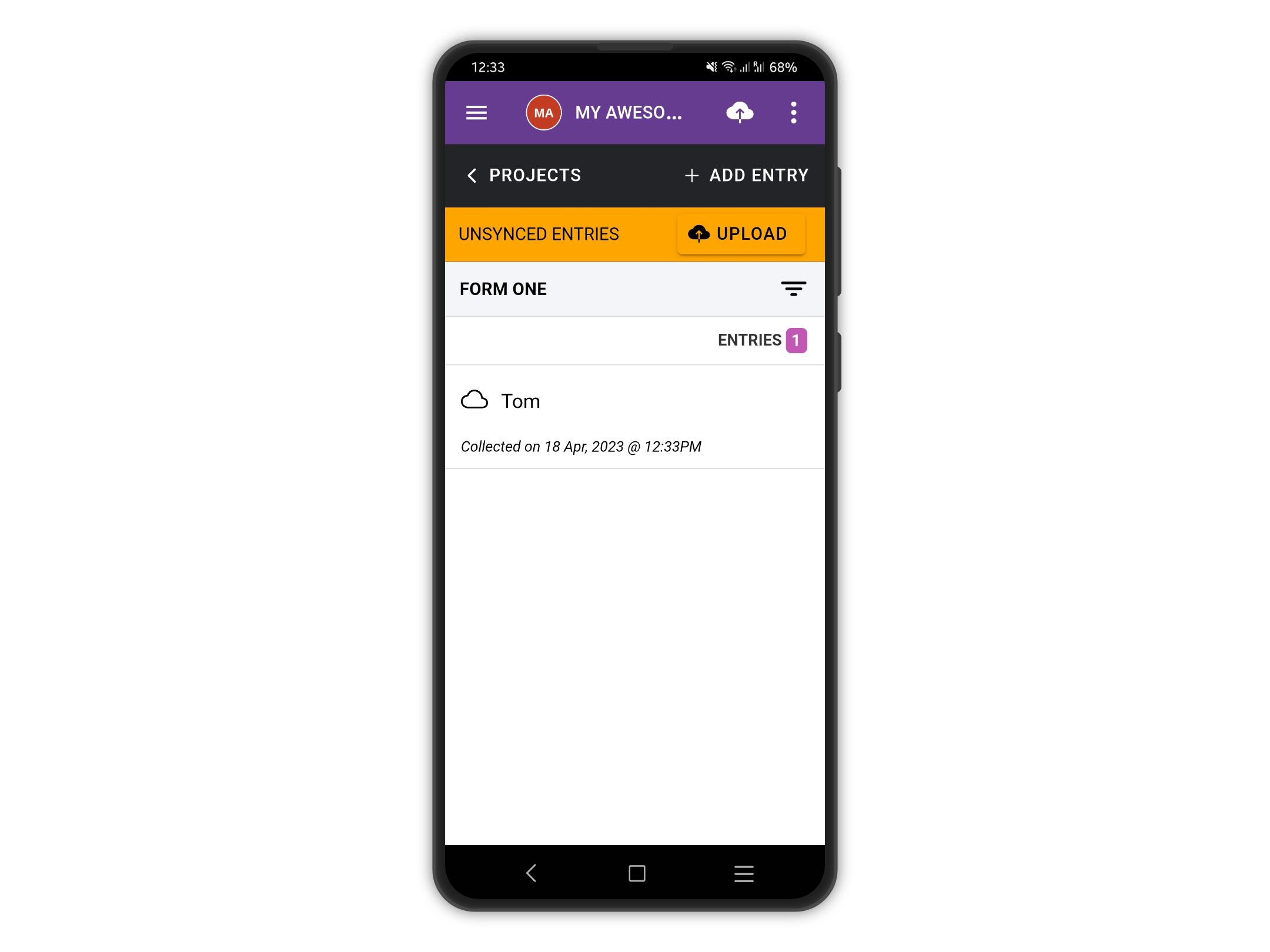 The project above is a simple two questions form asking for names and sex. As you notice, the "Sex?" question is not required. Let's add it to the device and add an entry: