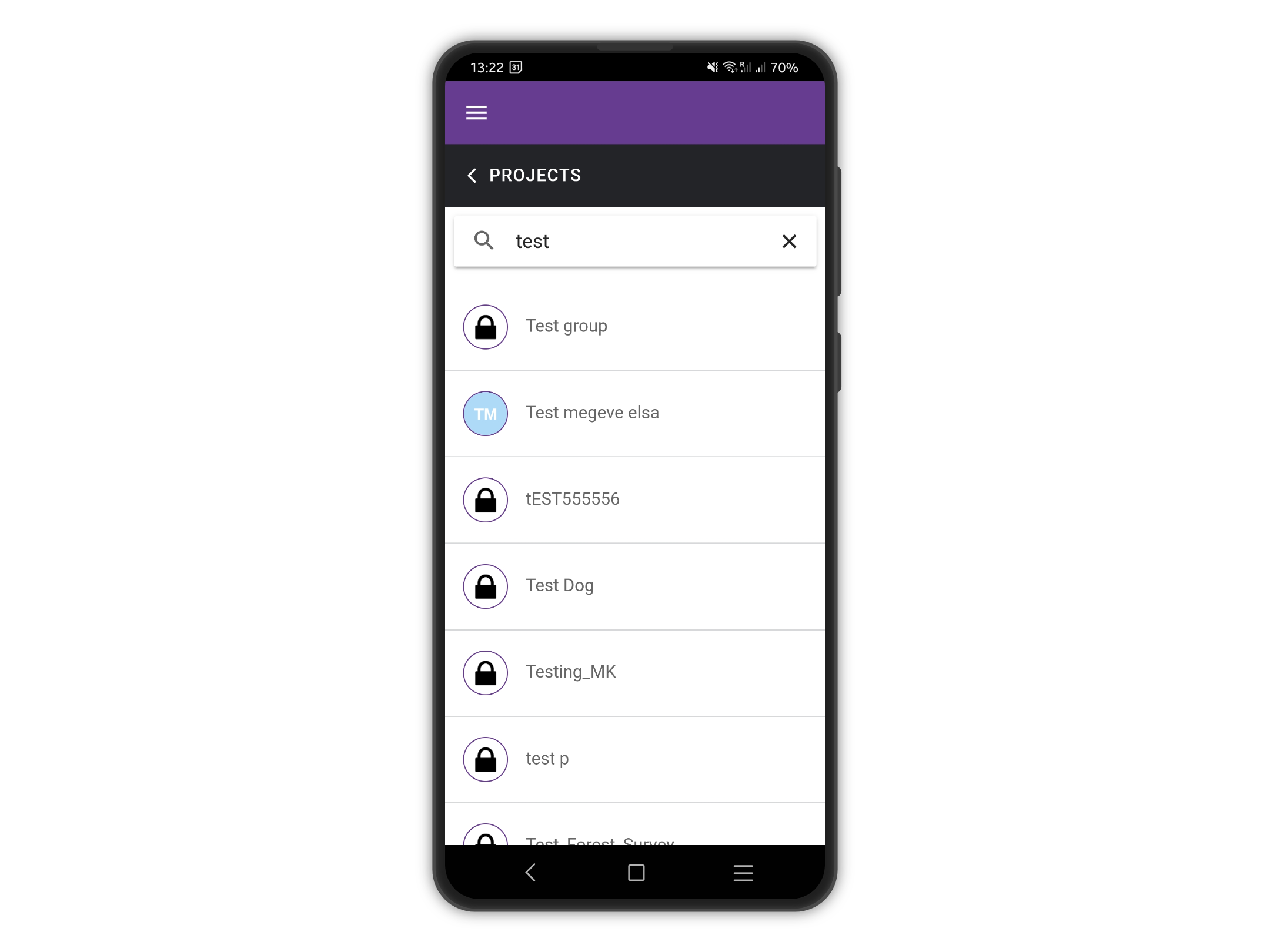 On the mobile app, all the projects are shown when searching (otherwise it would be impossible to download them) but **PRIVATE** projects show a lock instead of the logo and can be downloaded only after successful authentication by project members.